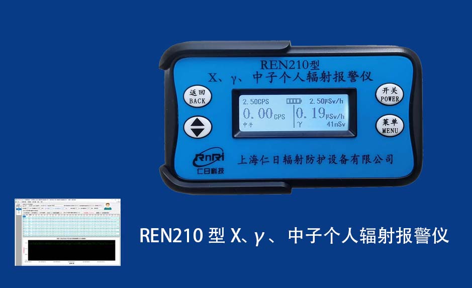 REN210型X、γ、中子個(gè)人輻射報(bào)警儀內(nèi)置SiPM和鋰玻璃晶體組成中子探測器儀器,采用反照率方式探測中子射線,同時(shí)也能探測X、γ射線。因此它可同事監(jiān)檢測X、γ、中子三種射線。能顯示工作場所的劑量當(dāng)量率和累積劑量,更換電池時(shí),日期及累積數(shù)據(jù)能永久保存。可選配RenRiPersonal個(gè)人劑量管理軟件,該軟件可存儲(chǔ)多個(gè)人的歷史數(shù)據(jù),能記錄日累積、月累積、年累積、輻照時(shí)長、計(jì)算平均劑量率、扣除或不扣除本底輻射,且以文字和圖譜的方式展現(xiàn)數(shù)據(jù)。廣泛應(yīng)用于環(huán)保、化工、水泥、煤礦、土木工程、石油、醫(yī)院、疾控、進(jìn)出口商檢、核電、加速器、機(jī)場、中子源庫和其他安檢、邊境控制海關(guān)檢測等領(lǐng)域中的工作人員進(jìn)行個(gè)人安全防護(hù)監(jiān)測及放射性提示。